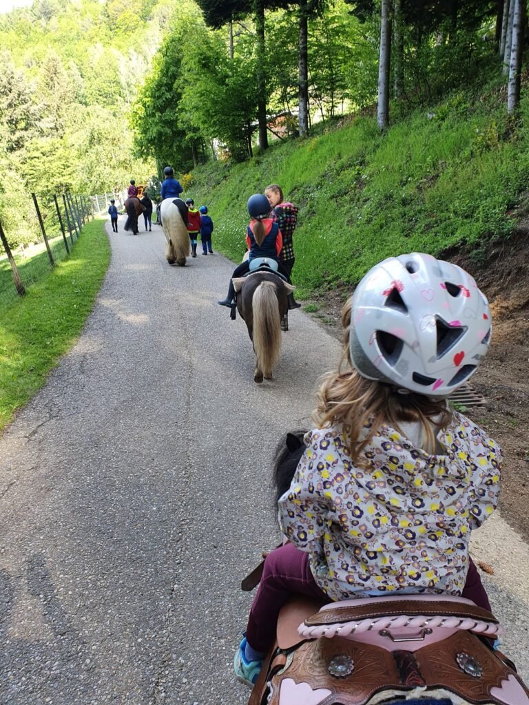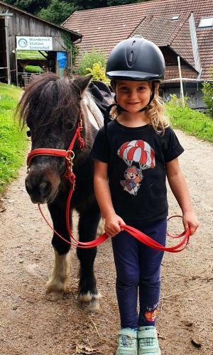 Unsere Ponygruppe für Kinder im Alter von 2 bis 4 Jahren trifft sich einmal pro Woche auf dem Simmehof. Während sich die begleitenden Eltern auf unserer Panoramaterrasse entspannen, dürfen sich die Kinder unter fachkundiger Anleitung mit unseren Ponys beschäftigen. Putzen, schmusen, knuddeln, reiten – spielerisch werden die Kinder an den Umgang mit den Ponys herangeführt. Mit auf dem Programm steht auch ein Spaziergang in den direkt an den Hof anschließenden Wald. Was es dort wohl alles zu entdecken gibt?